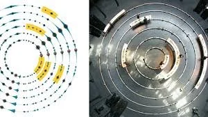 Component: Large horizontal plates covered in fine sand or liquid, positioned at acoustic nodes throughout the space