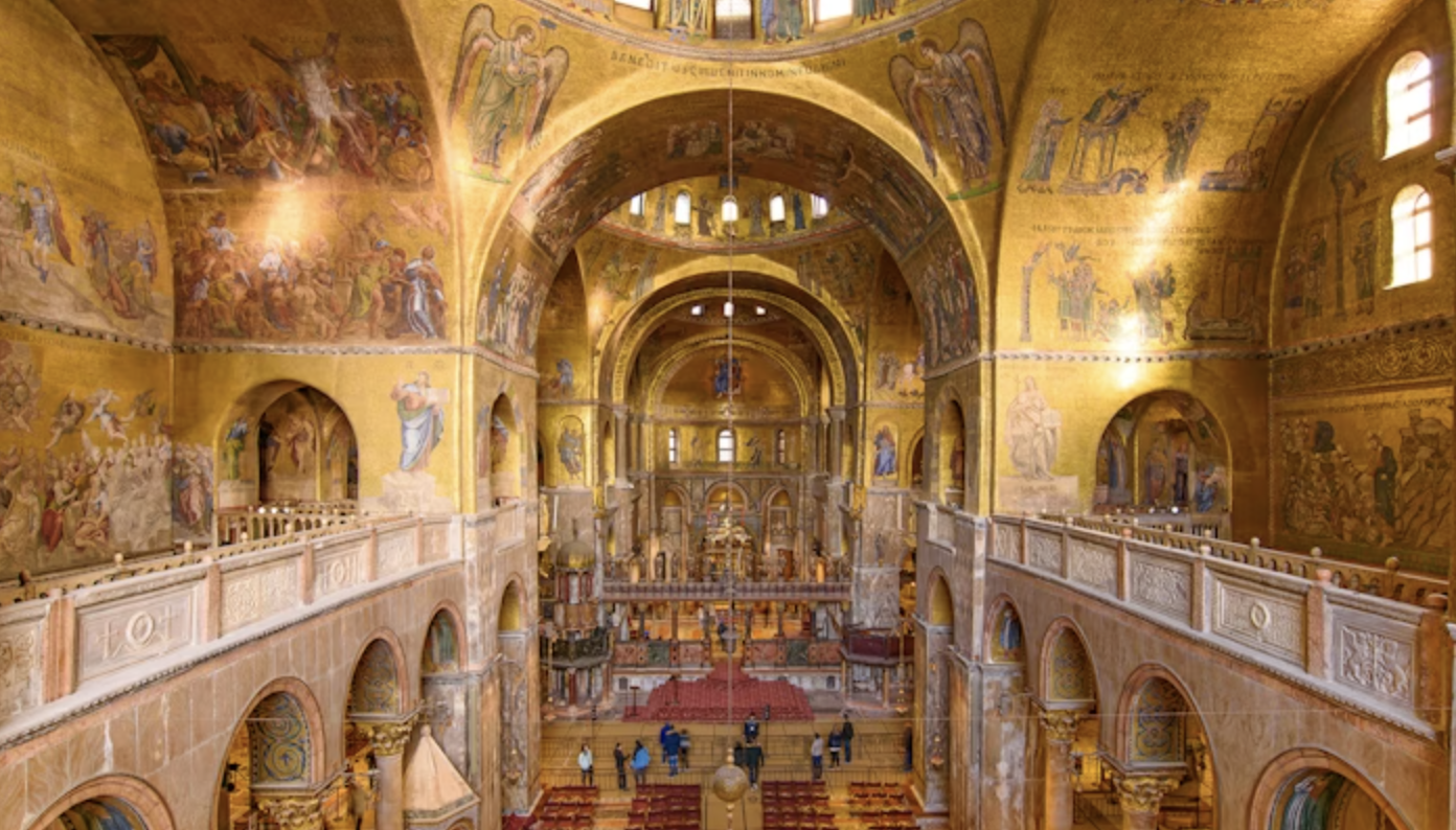 In the 16th century, Basilica di San Marco in Venice had two organ lofts facing each other. Composers started writing music where sound physically moved across the room. They invented “surround sound” or the “stereo” effect.