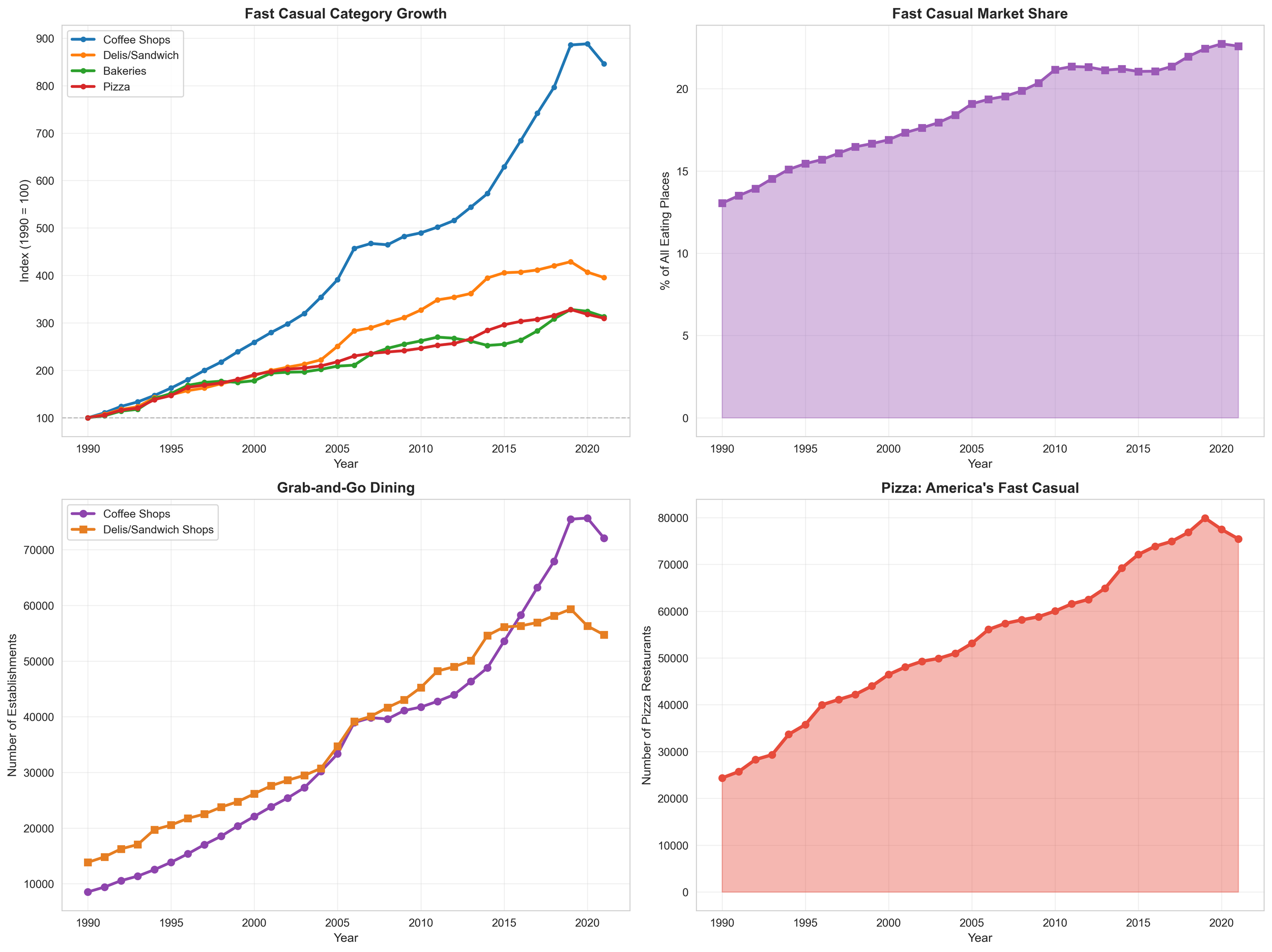 For this analysis and all the visualizations, I used the National Neighborhood Data Archive (NaNDA), which tracks establishment counts across U.S. Census Tracts from 1990–2021 across six sectors: grocery, restaurants, retail, recreation/fitness, arts/entertainment, and hospitality. It provides a three-decade view of where Americans could eat, shop, exercise, and gather.